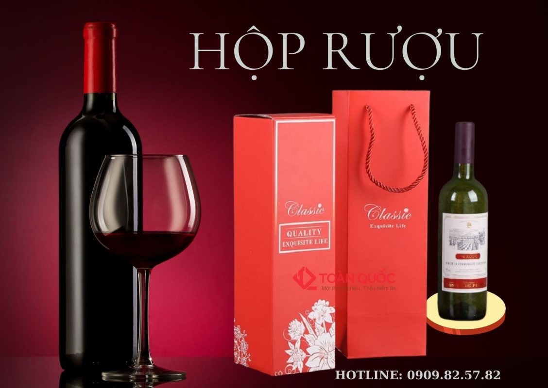 Toàn Quốc đã chuẩn hóa sẵn form hộp 1 chai và 2 chai, phù hợp đa số kích thước chai rượu phổ biến hiện nay, giúp khách chỉ cần chọn mẫu – in logo – nhận hàng nhanh.